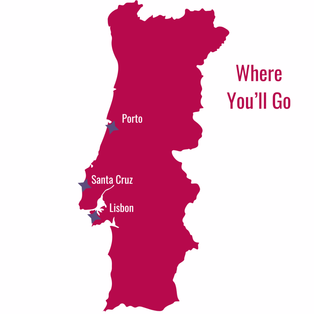 This trip features the cities of Lisbon, Porto, & Santa Cruz. In addition, there are several cultural and historical stops within those areas, including: